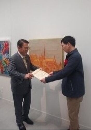 アトリエ・カーグで、絵を描かれている、こばちゃんがあいちアールブリュット展で優秀賞に選ばれ、先日、大村知事から表彰されました!お母さんが写真を送ってくれました!おめでとうございます! 去年は、4名表彰されています。 夜勤明け、今日は寝ました(…