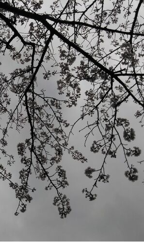 今日は雨ですが、昨日皆さんと車窓から眺めた桜は、曇天と共色でした。それはそれで、染色で使われるメヒキという技(柄の色と同じ色を薄めた色で全体を染める)に似ていて、素敵でした。藤木先生の『灰色の断層』も、思い出しました。十茶百鼠という言葉を…